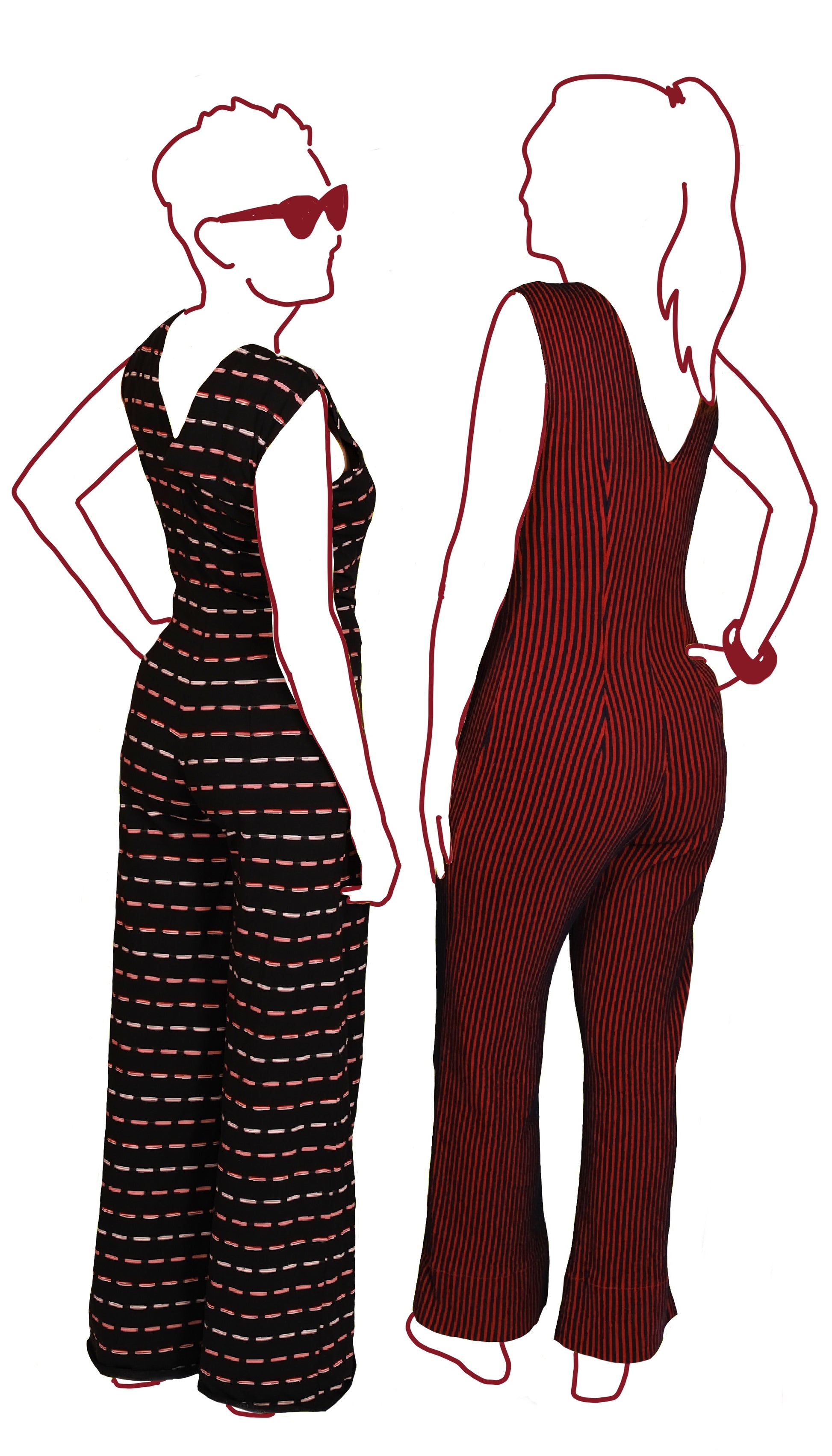 Our super quick to make Jump Up Suit is designed for two-way stretch fabric. It is sleeveless with a fitted bodice and wide legs. It looks great on its own or over a fitted tee shirt, shirt or blouse. The neckline is an unusual square with a nip at the front and vee at the back. No need for a zip – just shimmy in and join the party. Fun fact – a ‘Jump Up’ is an impromptu Caribbean get together, with some beers, barbecue and music – we can’t think of a better outfit for such an event!