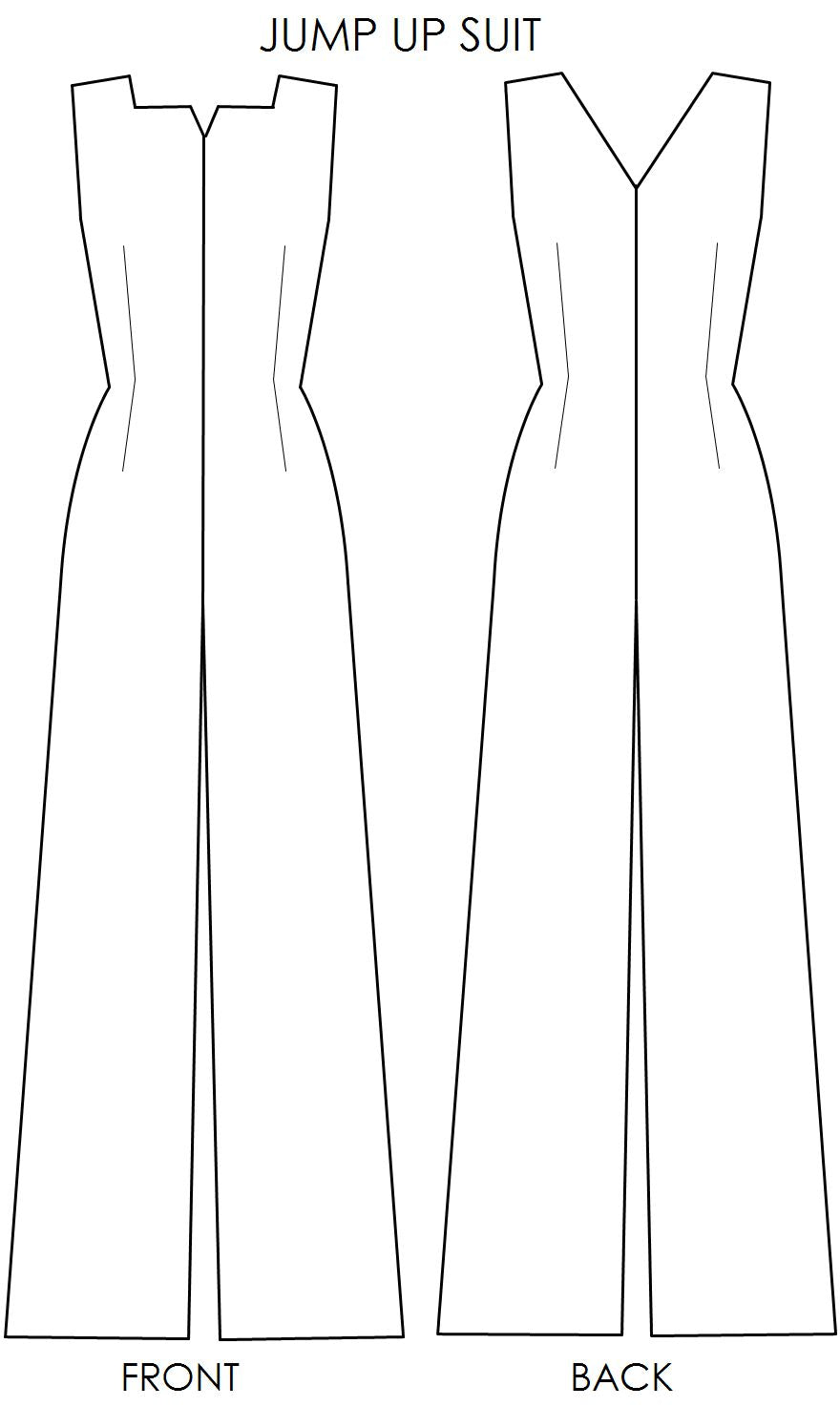 Close-fitting through the bust, waist and hips with wide straight legs from the hip down. The vertical darts from bust to hip can be easily adjusted to make a looser or tighter silhouette.