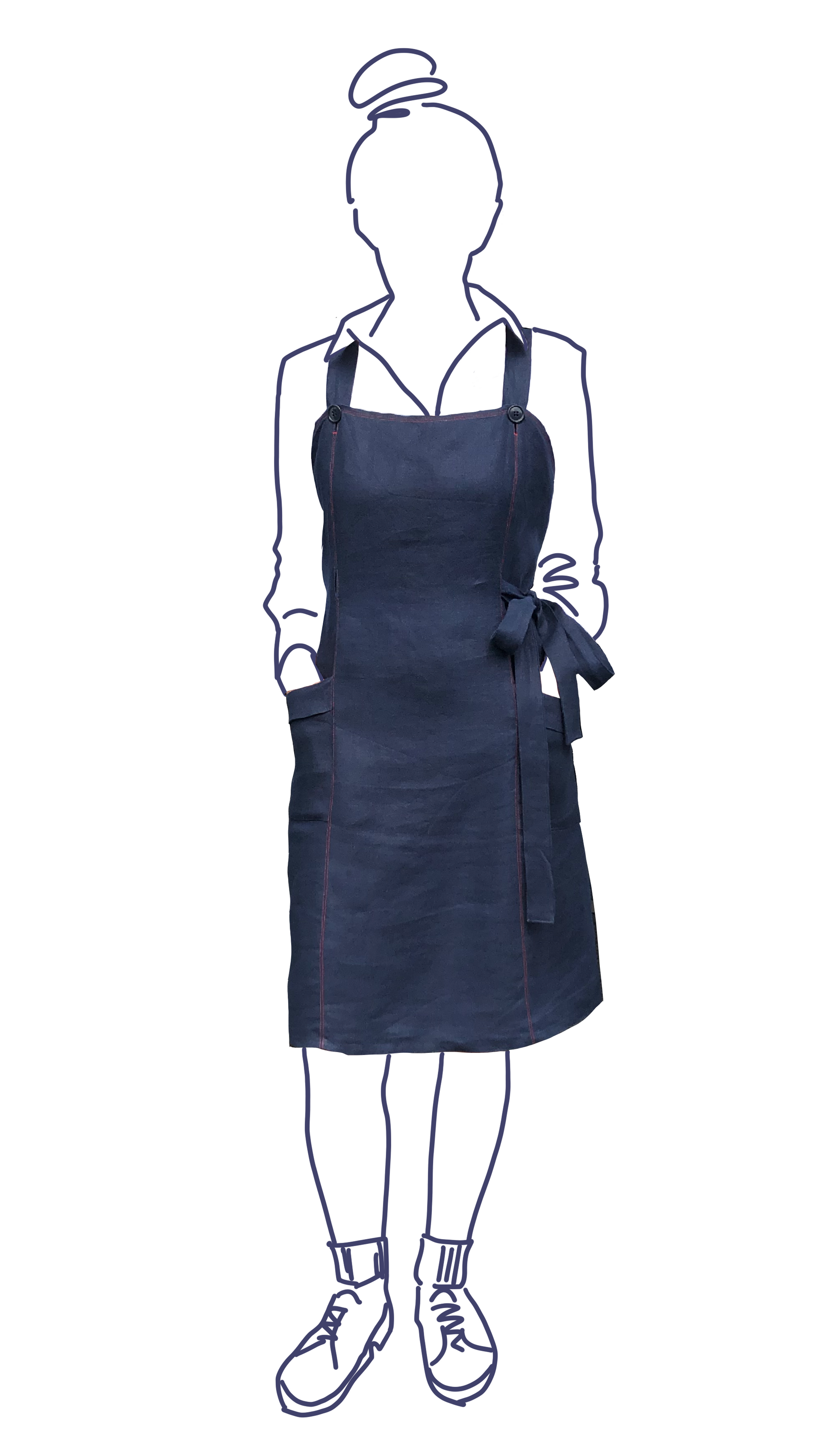 Our Apron Dress has all the utility-chic of an apron but fits like a dress. The unique panelled wrap-around design incorporates discreet bust, waist and hip shaping to accommodate all body shapes and sizes. The pattern comes together quickly, with options for extra flourishes such as top stitching, in-seam button-holes, and inset patch pockets. This a practical design that looks just as cool behind the kitchen counter as it does sitting at a bar stool. What are you waiting for? Time to stir up your version!