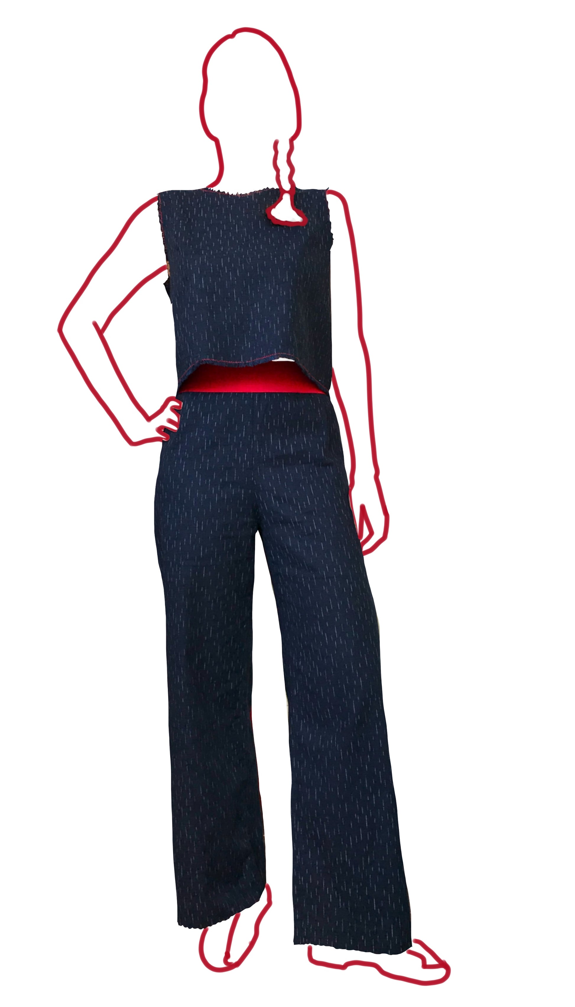 FITThe Helicopter Trousers have pleats at the front and minimal gathers at the back give to give a sleek look without the need for a zip. The Helicopter Top is a simple shell design, slightly fitted through the bust and hanging loose at the waist. Bust darts ensure no baggy armholes!