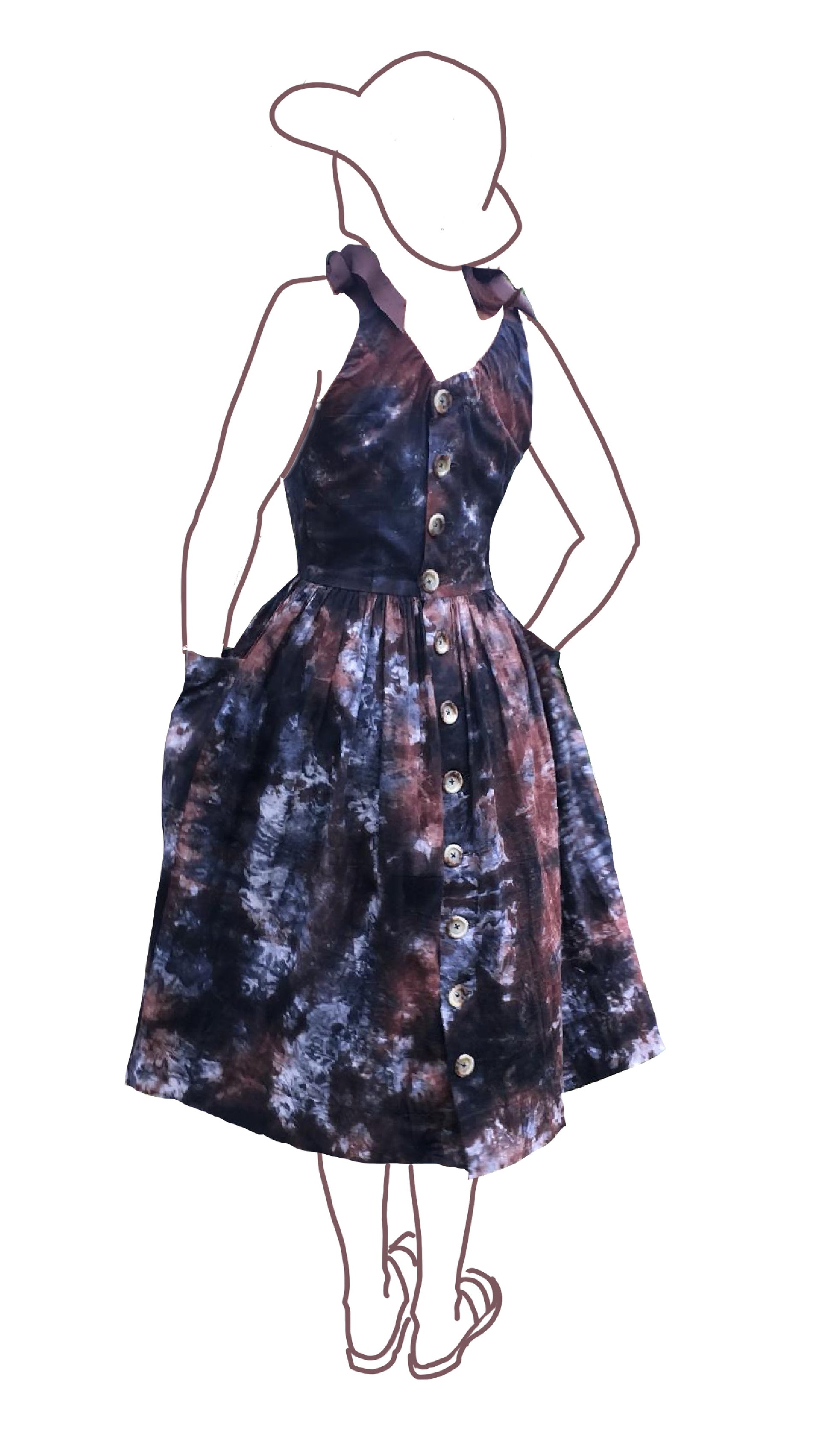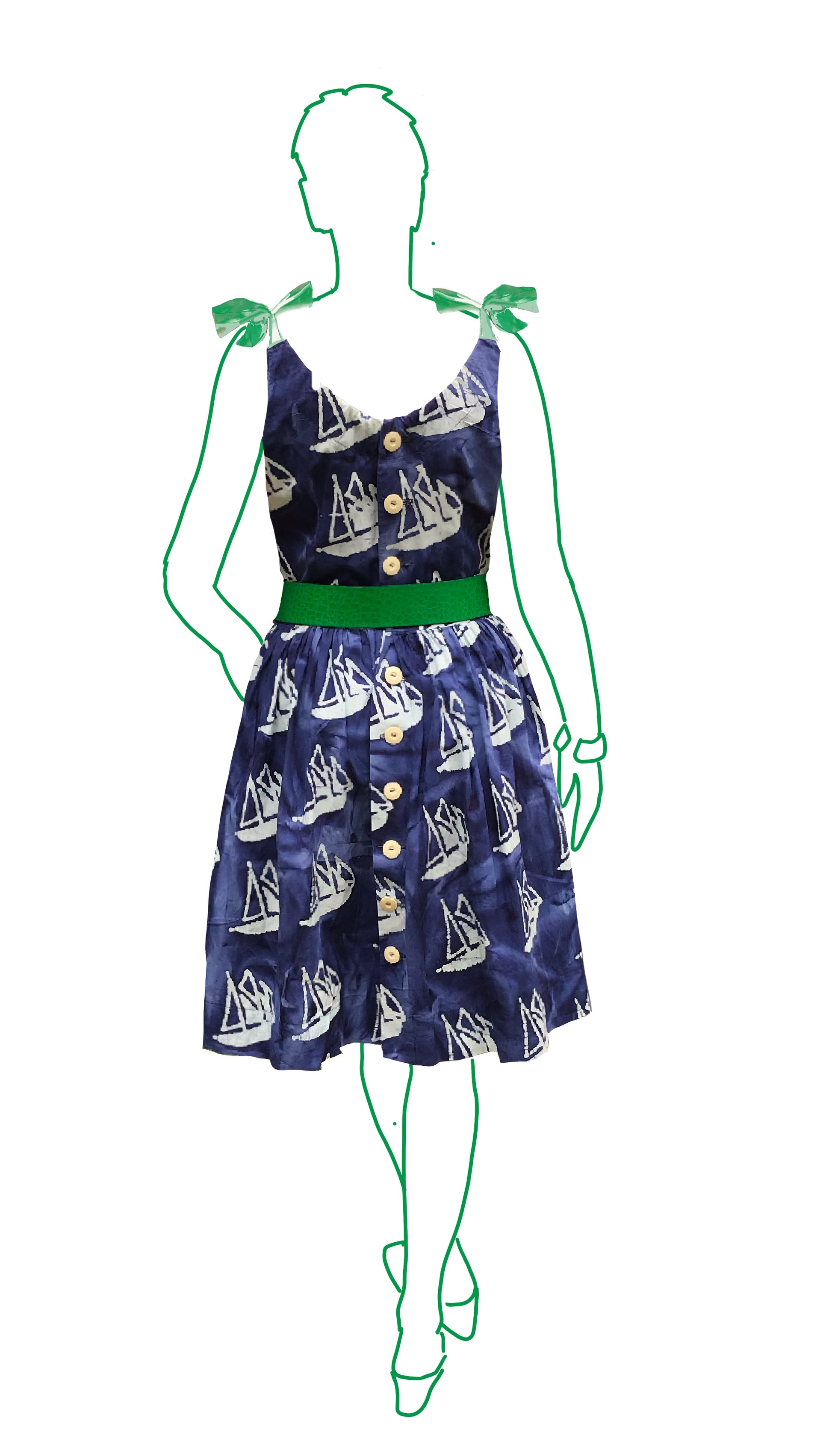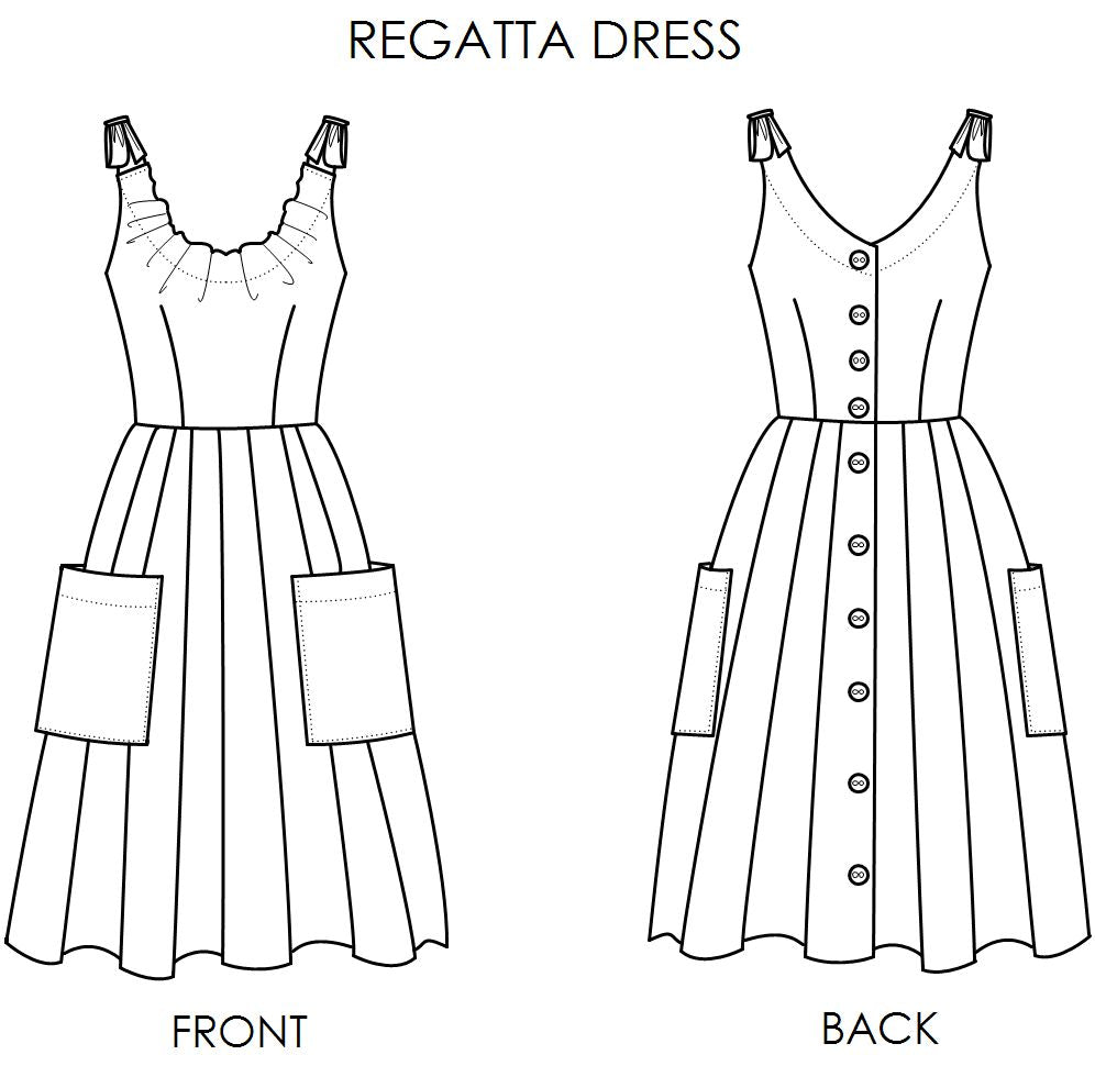 The Regatta Dress is easy to make, fun to sew and a delight to wear - a frock as suited to romping through a field of wildflowers as sitting eating oysters in a seaside bistro! The fully lined bodice has a nifty neckline threaded through with ribbons, which tie at the shoulders to create pretty straps. It buttons all the way down the back giving a bold vintage feel. The skirt is a simple gathered rectangle - with optional big patch pockets.