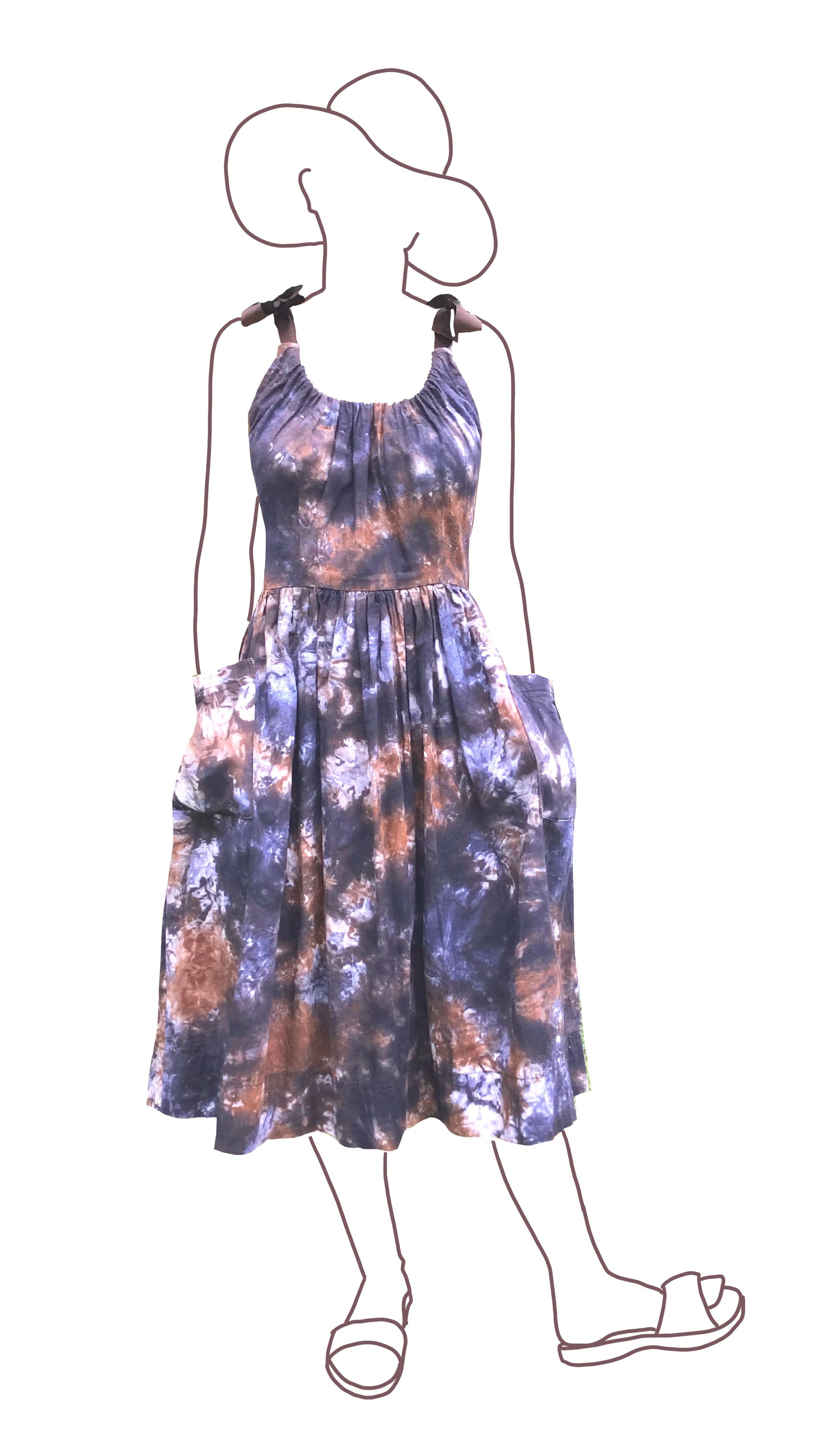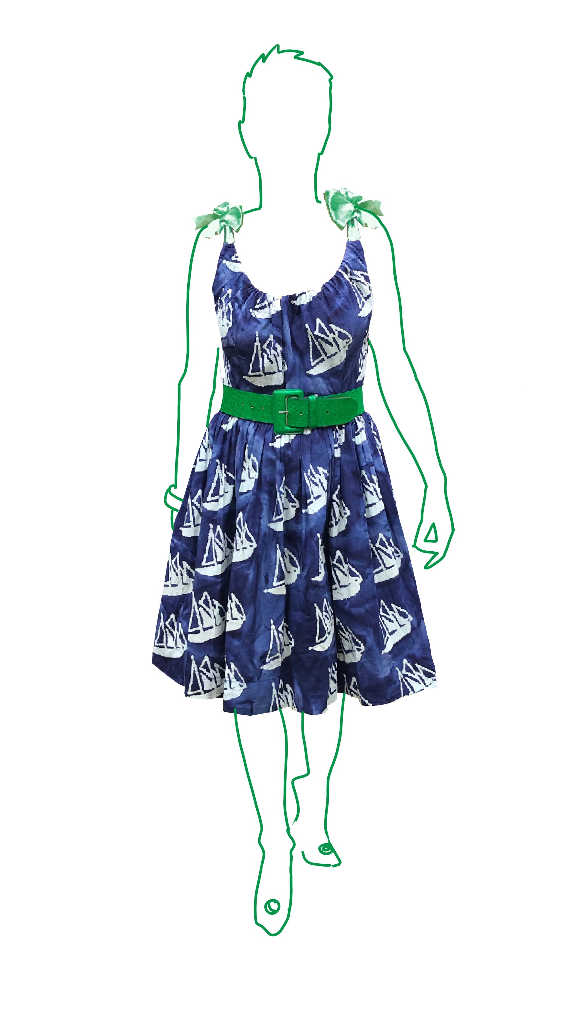 The dress is drafted to be fairly loose through the bust and waist to give a relaxed look. The final bodice shaping is determined by how you arrange the neckline along the ribbons. If you like a closer fit through the bust/waist its easy to take in the bodice down the side seams, or cinch in with a belt.