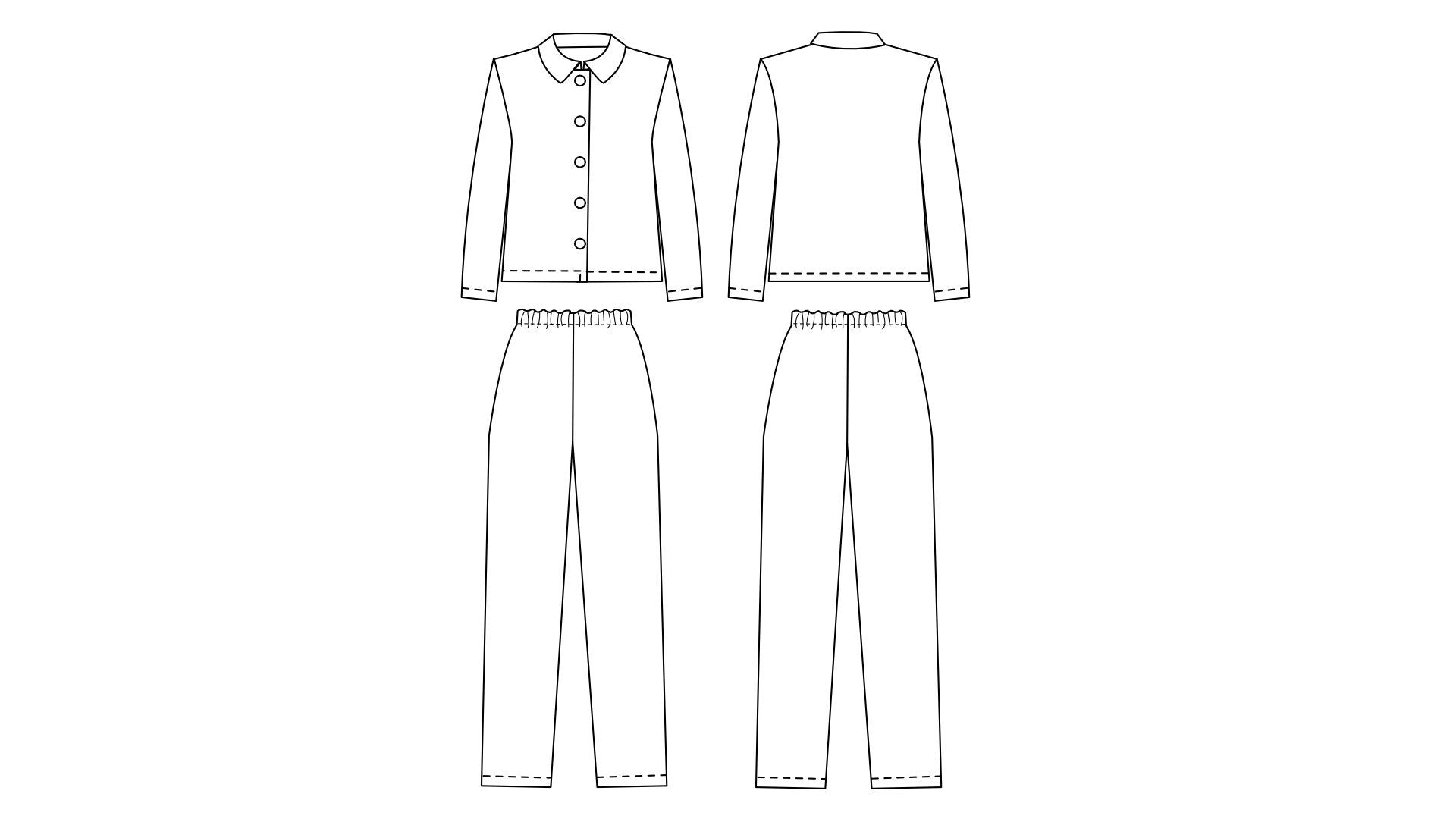 The trousers couldn’t be easier - just 3 seams and some elastic. The top is an easy introduction to french seams, flat construction sleeve insertion and a simple collar. You’ll also need to make some buttonholes. Start with the trousers if you’re a complete beginner and wear them with a t-shirt while you complete the shirt!